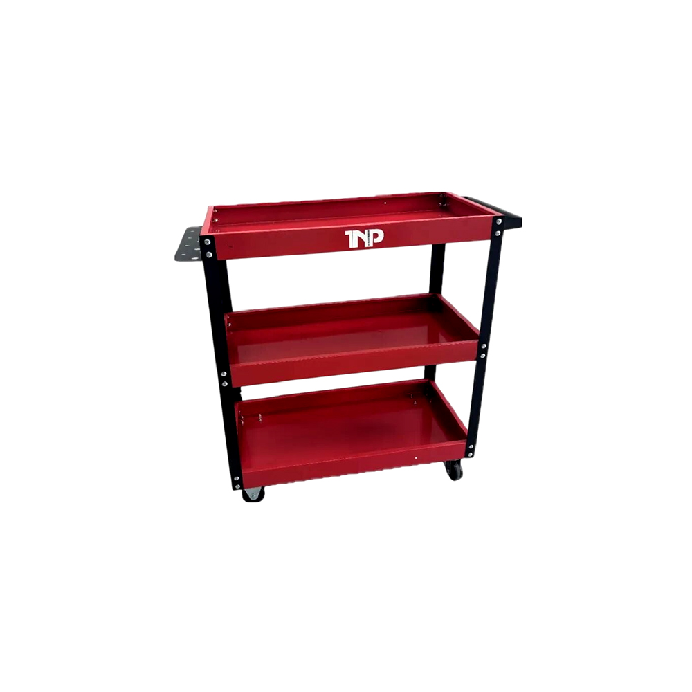 TNP մետաղական դարակաշարը նախատեսված է գործիքների, պարագաների և մանր իրերի պահման ու տեղափոխման համար։ Պատրաստված է ամուր պողպատից, ունի երեք հարմարավետ դարակ և չորս անիվ՝ հեշտ տեղափոխման համար։ Դարակները ունեն եզրեր իրերի ընկնելը կանխելու համար։ Հարմար է ավտոսերվիսների, արտադրամասերի և տնային արհեստանոցների համար։