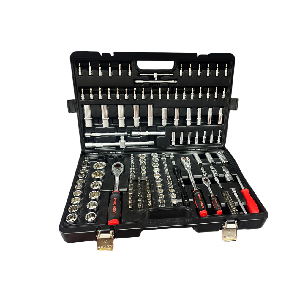Набор инструментов PPRROFORCE включает 176 предметов, охватывающих самые востребованные инструменты для автосервиса, механических и домашних работ. Комплект обеспечивает надежность, универсальность и удобство использования как в профессиональных мастерских, так и дома.